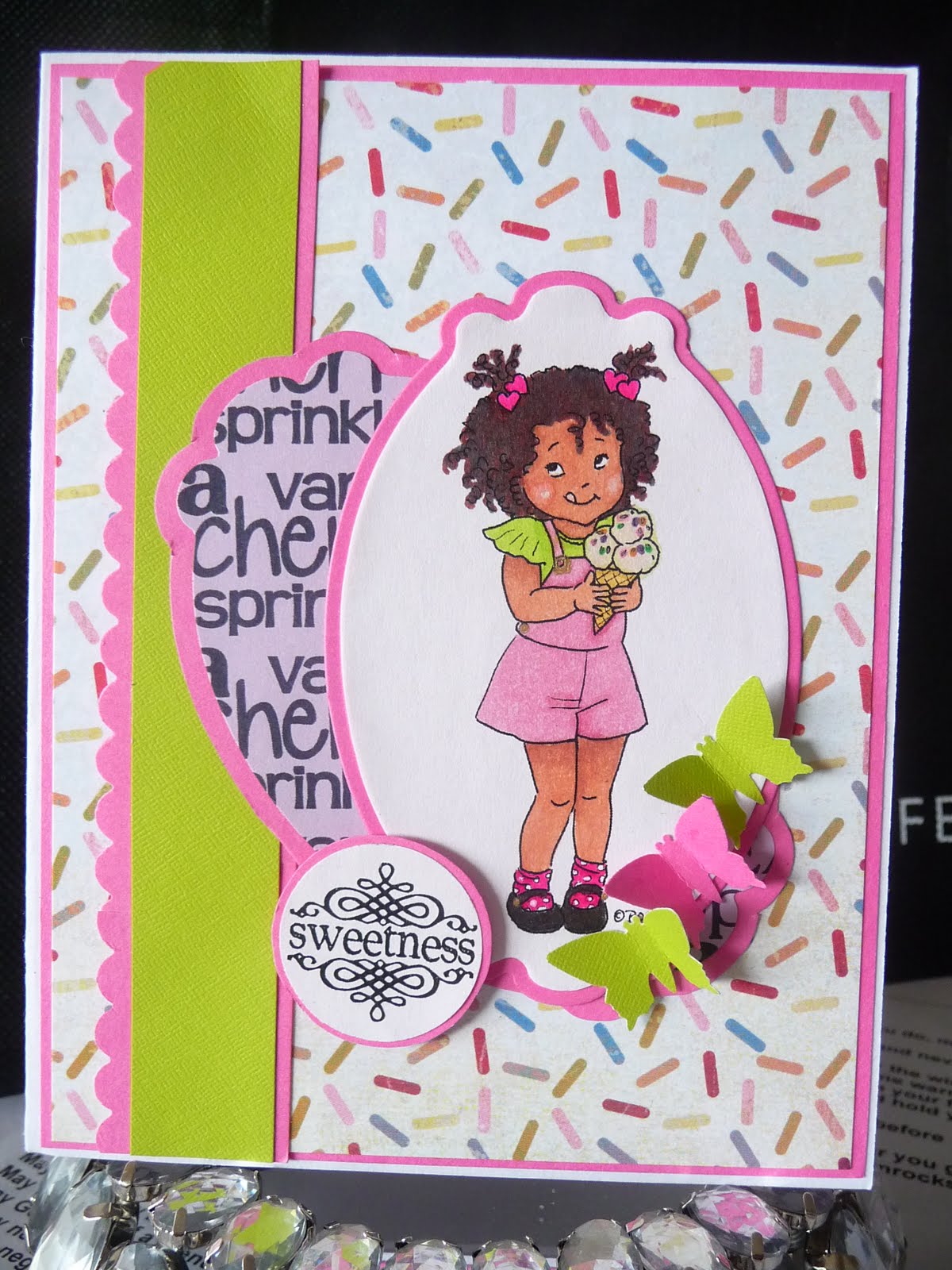 It's time for Faith's progressive challenge over at Delightful Inspiration. This week we were given this digi set named Catch the bug, so cute. The Beary Scrap is contuning with with their Birthday Bash and the theme until March 31, is Spring. The sketch is from Doodle Pantry Challenge #10 and over at DYSU it's about shine. This card will also be entered into Paper Sundaes Embossing challenge.
